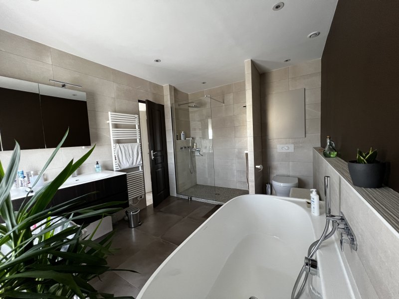 Contemporaine de 162 m2 habitables sur jardin clos et paysager de 557 m2 à proximité des écoles et commerces. Vous découvrirez au rez de chaussée...