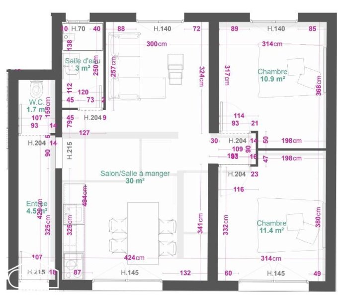 Appartement 3 pièces 57m²